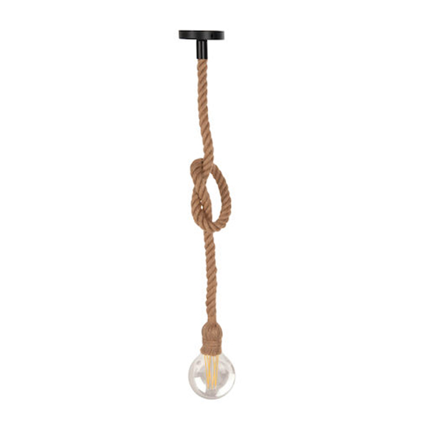Κρεμαστό φωτιστικό οροφής 1 μέτρου, κατάλληλο για λαμπτήρες με ντουί E27. Κατασκευασμένο από σχοινί απόχρωσης μπεζ, καθαρίζεται με ευκολία χρησιμοποιώντας ένα νωπό πανί. Μπορεί να ρυθμιστεί το ύψος ανάλογα το επιθυμητό αποτέλεσμα. Ο λαμπτήρας δεν περιλαμβάνεται.