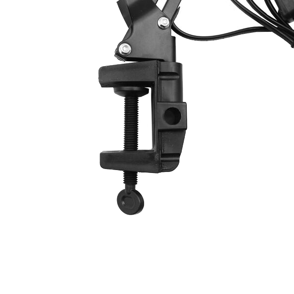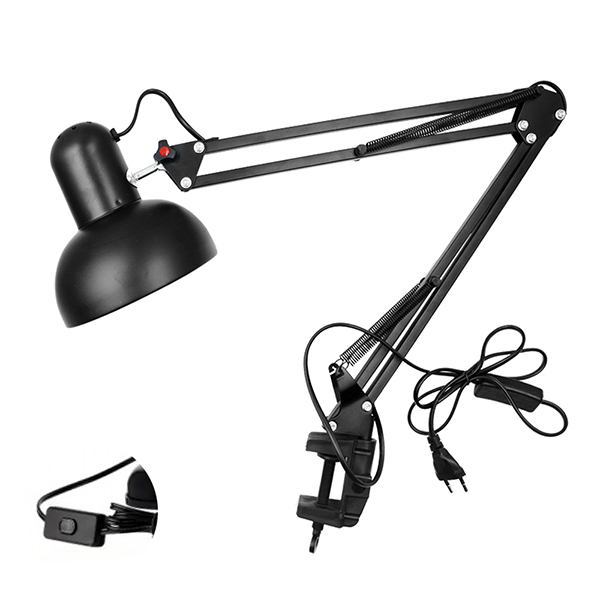 Φωτιστικό γραφείου με αναδιπλούμενο βραχίονα και κλιπ στήριξης. Κατάλληλο για ντουί λαμπτήρα E27 (δεν περιλαμβάνεται). Διαθέτει ενσωματωμένο διακόπτη On/Off στο καλώδιό του. Συνδέεται με πρίζα οικιακού ρεύματος.