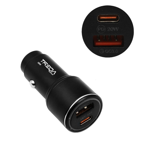 Φορτιστής αυτοκινήτου 38W με θύρες 1xUSB και 1xTypeC CS-322 Treqa