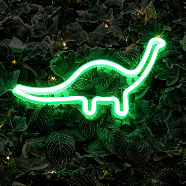 Φωτιστικό δεινόσαυρος κατάλληλο για διακόσμηση εσωτερικών χώρων. Διαθέτει neon πράσινο φωτισμό. Τροφοδοτείται με USB ή με 3 μπαταρίες τύπου ΑΑ (δεν περιλαμβάνονται).